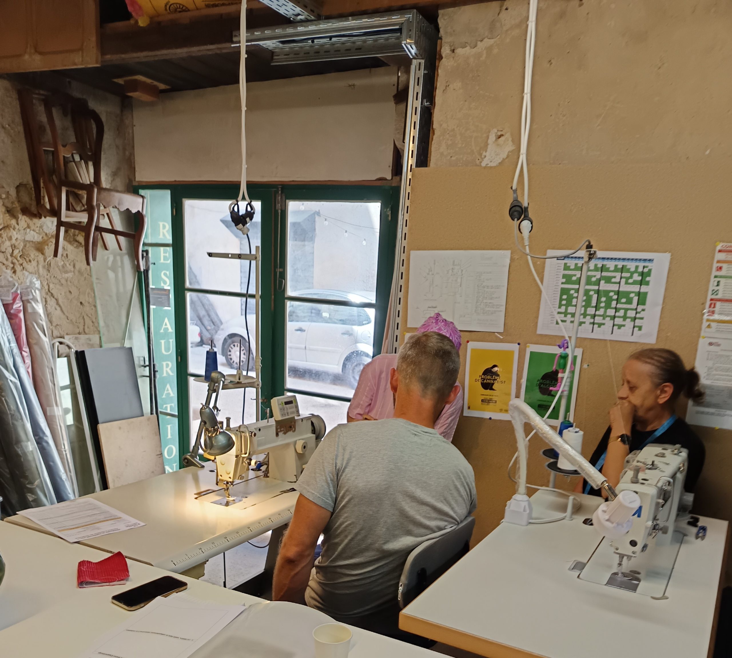 Là, il s’agissait de montrer qu’à travers la couture, de nombreuses femmes et hommes bénéficient de leur parcours d’insertion en confectionnant divers articles (sacs, bobs etc…) qui seront vendus à des clients particuliers. Yolande LOMBARDO, responsable de l’unité de production, a pu longuement échanger avec les stagiaires pour leur expliquer en quoi consiste cet atelier et quels y sont les rouages et le fonctionnement. L’encadrant technique sur place a pu également témoigner de son travail, de ses valeurs et de sa vision et de son engagement professionnel.